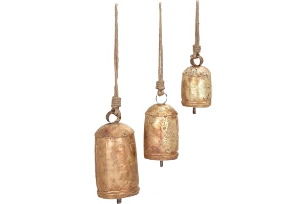 Deco 79 Metal Tibetan Inspired Meditation Decorative Cow Bell with Jute Hanging Rope