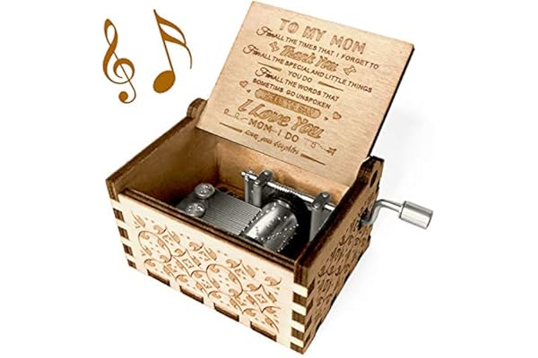 Gift for Mom from Daughter, Wood Laser Engraved Vintage Mini Size Music Boxes, Unique Best Gift for Mother's Day, Birthday/Christmas, Thanksgiving Day