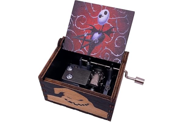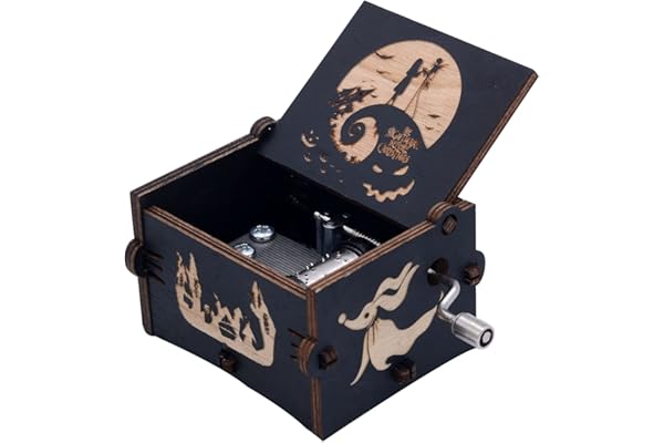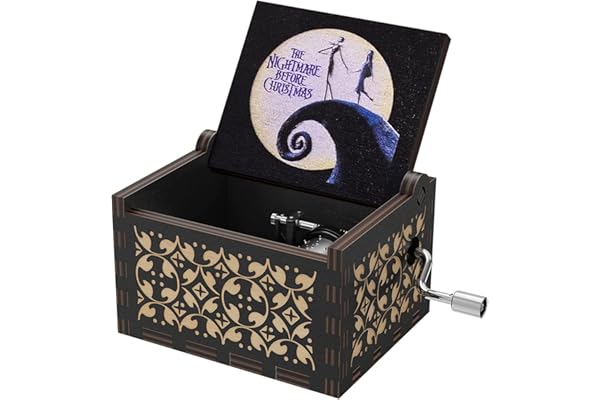 Kcikn Music Box Wooden Engraved The Nightmare Before Christmas Hand-cranked Musical Box
