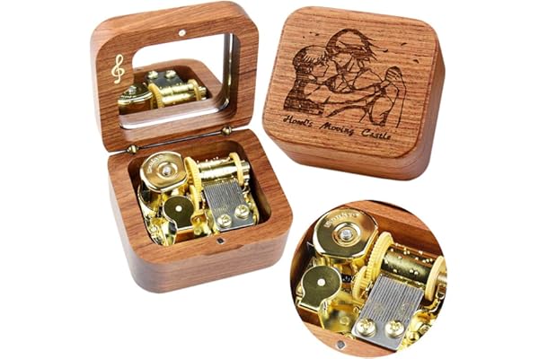 Howl's moving castle-Merry Go Round of Life Music Box Red Vintage Wood Carved Mechanism Musical Box Wind Up Music Box Gift for Christmas (Musical note Rosewood box)