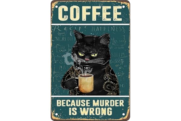 Retro Cat Coffee Metal Sign Vintage Kitchen Signs Wall Decor Because Murder Is Wrong Funny Tin Signs Bar Decorations Art Poster 8x12 Inch