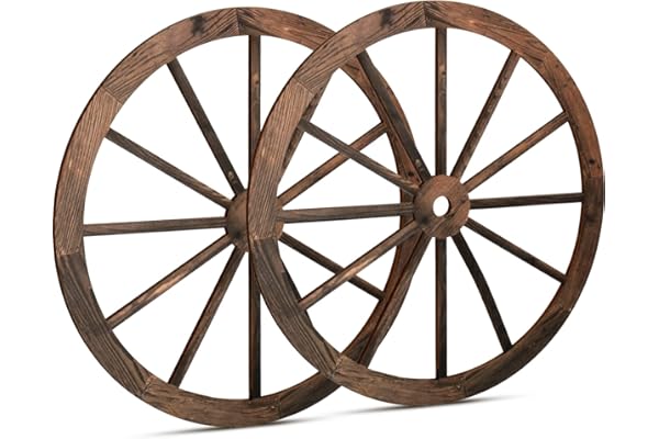 2 Pcs 12 Inch Wagon Wheel Decor Wooden Wagon Wheel Vintage Rustic Wall Wood Cartwheel Decor Old Western Style 3D Art Decorative for Bar Garage Indoor Outdoor (Brown)