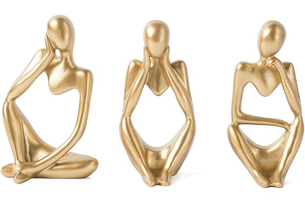 FJS Set of 3 Golden Resin Collectible Figurines for Home Living Room Office Shelf Decoration