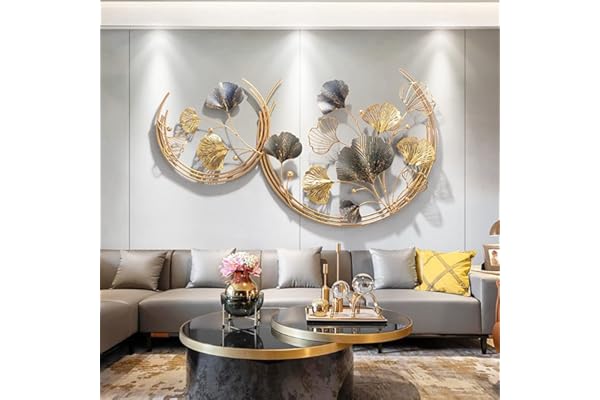 Golden Ginkgo Leaves Metal Wall Decor with Frame, Gold Metal Art Wall Sculpture for Study Living Room Bedroom Artwork Hotel Decor Indoor Outdoor, 110 X 67cm