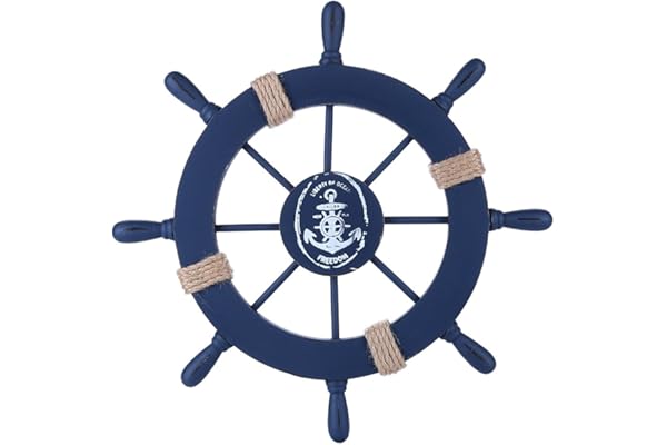Rienar Nautical Beach Wooden Boat Ship Steering Wheel Fishing Net Shell Home Wall Decor (Deep Blue)