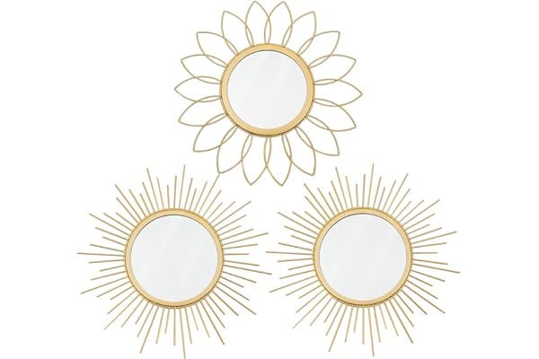 3 Pack Gold Mirrors for Wall Metal Sunburst Wall Mirrors Home Décor Decorative Hanging Wall Art for Living Room Bedroom Entryway