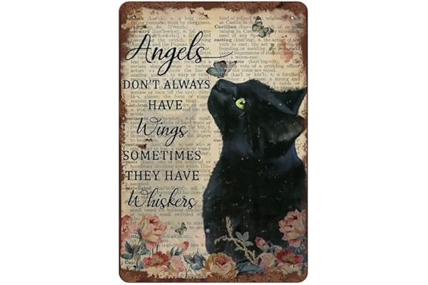 Angels Don't Always Have Wings Sometimes They Have Whiskers Tin Sign Vintage Floral Black Cat Cat Lovers Gift Vintage Metal Sign Plaque Metal Man Cave Bar Pub Club Home Wall Decoration 12x8 Inch