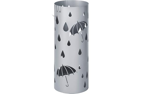 Round Umbrella Stand Rack, with Drip Tray and Hooks, 7.7 x 7.7 x 19.3 Inches, Silver Gray ULUC23S