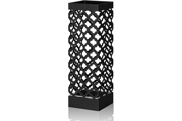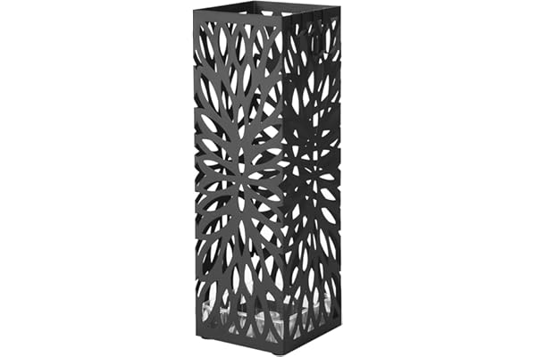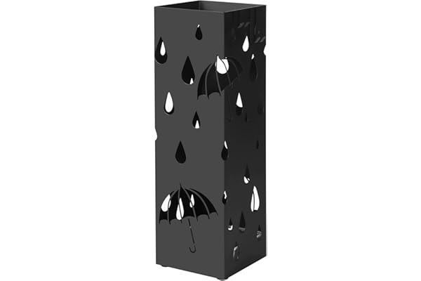 Square Umbrella Holder with Water Tray and Hooks, 6.1 x 6.1 x 19.3 Inches, Black ULUC49B