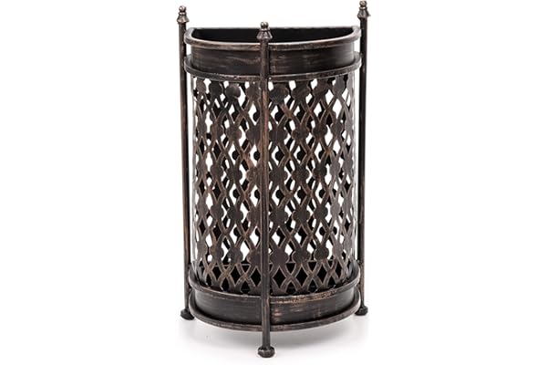 Dualplex Umbrella Stand Umbrella Holder Antique Look Metal Entry Hallway Décor Wallside Style w/Removable Drip Tray Home Office Rack Holds Umbrellas Canes Walking Sticks Gift Idea 16" Tall
