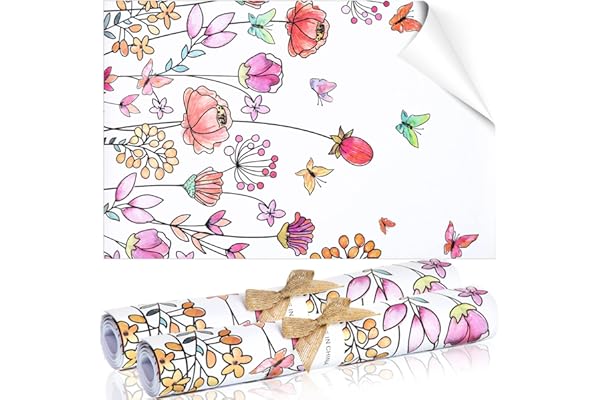 Floral Print - Six (6) Large 16.5 x 22 Inch Non-Adhesive Paper Sheets - Perfect for Closet Shelves and Dresser Drawers (White Ginger)