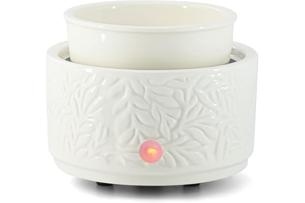 ElusiaKa Wax Melt Warmer Burner Ceramic 3-in-1 Oil Burner Electric Wax Melt Warmer Wax Warmer Burner Melter Fragrance Warmer for Home Office Bedroom Aromatherapy Gift& Décor (White Leaves)