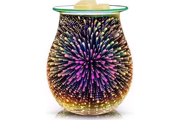 EQUSUPRO 3D Glass Electric Wax Melts Warmer Wax Burner Melter Fragrance Warmer for Home Office Bedroom Living Room Gifts & Decor (3D Fireworks)