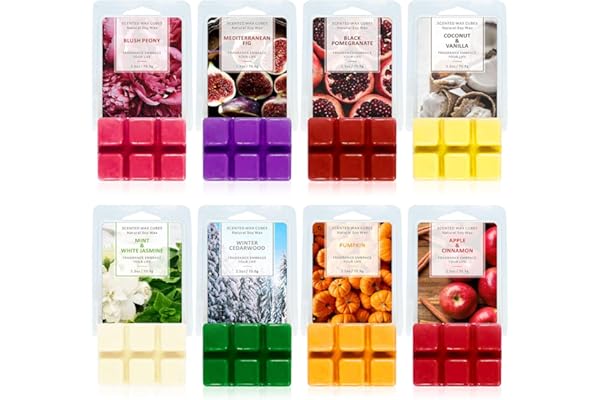 Wax Cubes, Scented Soy Wax Melts, 8x2.5 oz, Pumpkin, Apple & Cinnamon, Winter Cedarwood, Mint & White Jasmine, Coconut & Vanilla, Black Pomegranate, Mediterranean Fig