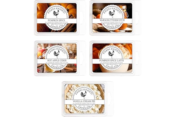 Pumpkin Patch Variety Mix 5 Pack - 1 Pound of Wax - 100% Plant Based Soy Wax Melts - Fall Wax Melts Cubes. Hayride, Spice, Latte, Vanilla Cream Pie, Apple Cider.