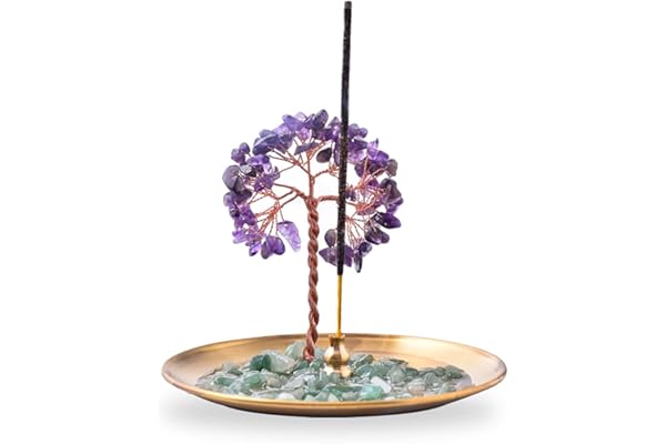 Healing Crystal Stone Money Tree Incense Burner, Ash Catcher for Yoga, Meditation and Home Decor (Purple)