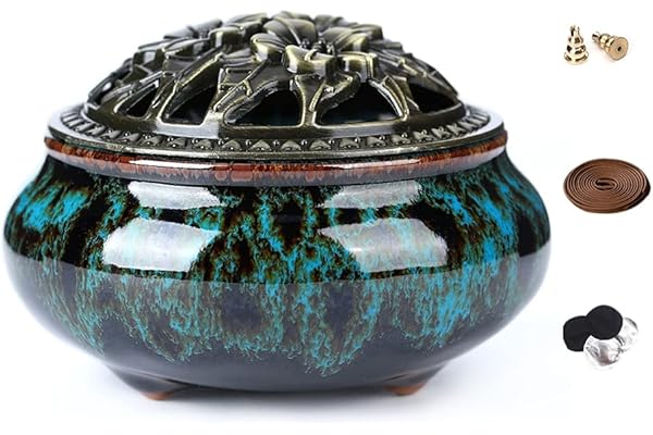 LAMDAWN Ceramic Incense Burner with Incense Stick Holder + Insulation use for Stick or Coil Incense
