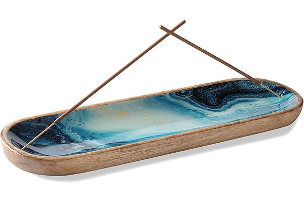 Modern Insence Ash Catcher or Insense Stick Holder for Home Décor, Wooden Incense Tray for Sticks, Mango Wood Trough, Blue