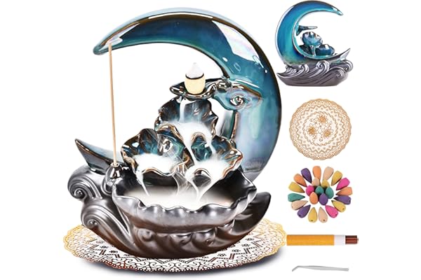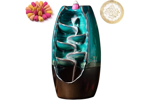 Waterfall Backflow Incense Holder, Aromatherapy Ornament, Zen Decor, Home Decor, Room Decor (Cyan)