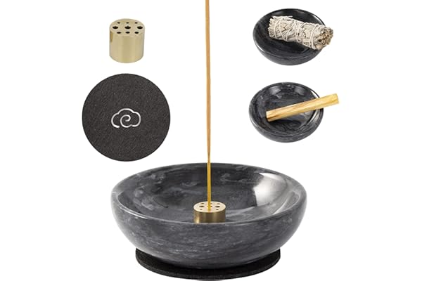 Beautiful Natural Marble Incense Burner for Meditation, 9 Incense Holes Suitable for Most Incense Types, Easily Grab All Incense Ash (Black)