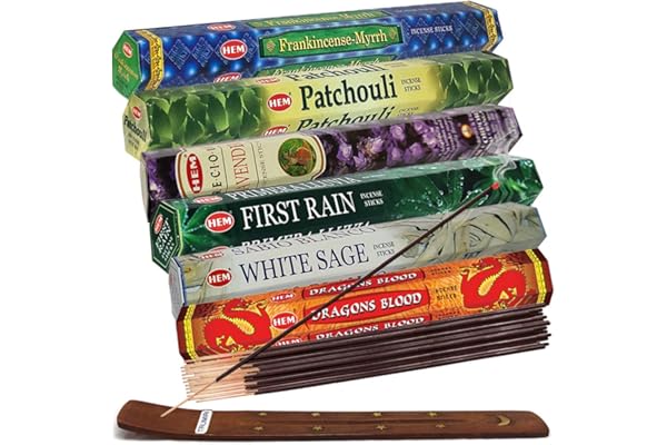 Hem Incense Sticks Variety Pack #23 and Incense Stick Holder Bundle with 6 Most Liked Fragrances