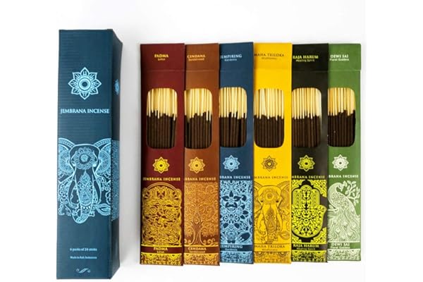 Mix 6 Scents (144 Sticks Total), 24 Sticks Each of Lotus (Padma), Sandalwood, Gardenia, Maha Triloka, Raja Harum & Dewi Sai (Amber), Incense Gift Sets from Bali Soap