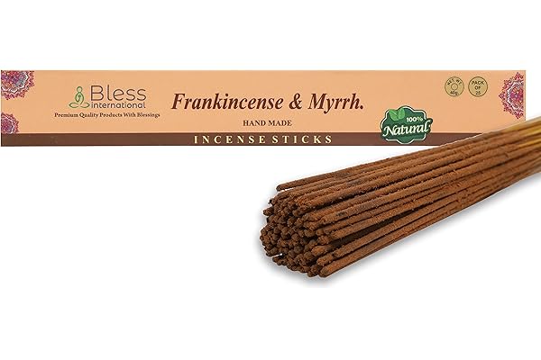 Bless-Frankincense-and-Myrrh 100%-Natural-Handmade-Hand-Dipped-Incense-Sticks Organic-Chemicals-Free for-Purification-Relaxation-Positivity-Yoga-Meditation The-Best-Woods-Scent (25 Sticks (40GM))