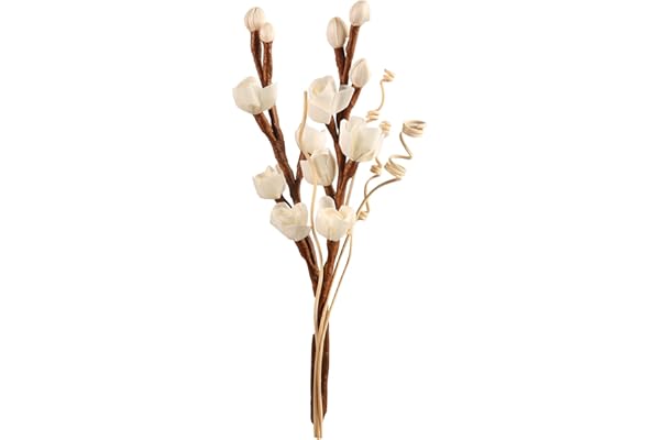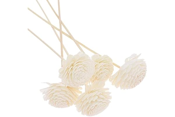 Handmade Sola White Rose Wood Flower Diffuser, with Rattan Sticks, for Room Fragrance & Home Decoration