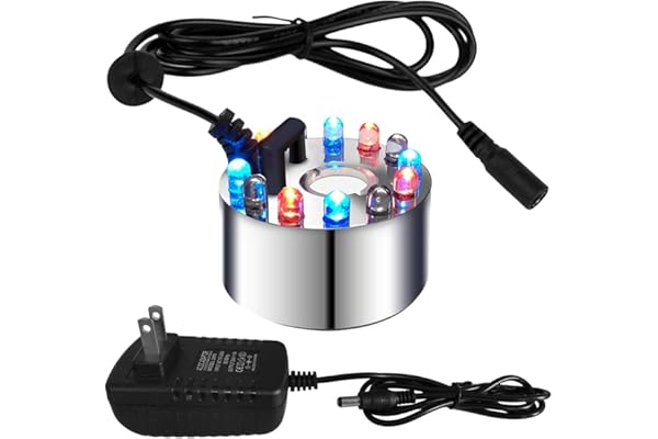 Ultrasonic Water Pond Fountain Fogger 12 LED Red Yellow and Blue Light Flashes Aluminum Atomizer Air Humidifier for and Rockery Fish Tank Vase Birdbath Deco