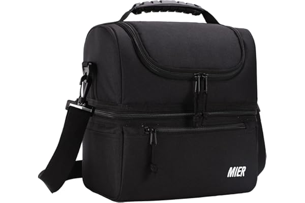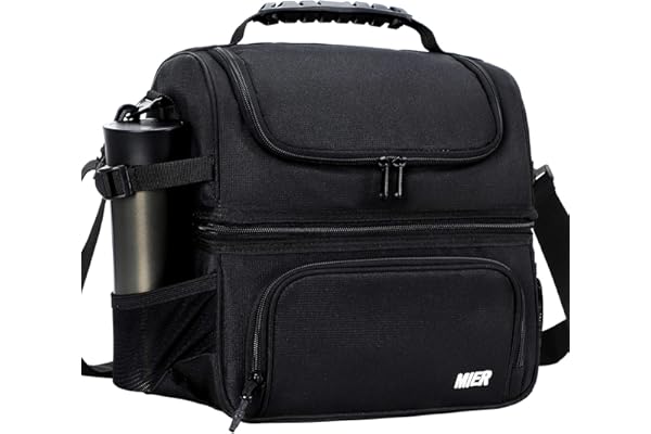 MIER Dual Compartment Lunch Bag Tote with Shoulder Strap for Men and Women Insulated Leakproof Cooler Bag