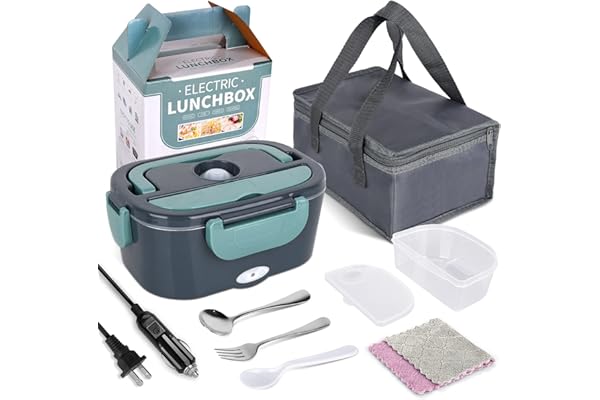 Herrfilk Portable Food Heater for Car & Home - Leak Proof, Lunch Heating Microwave for Truckers with Removable Stainless Steel Container 1.5 L, 110V/12V[Upgraded]