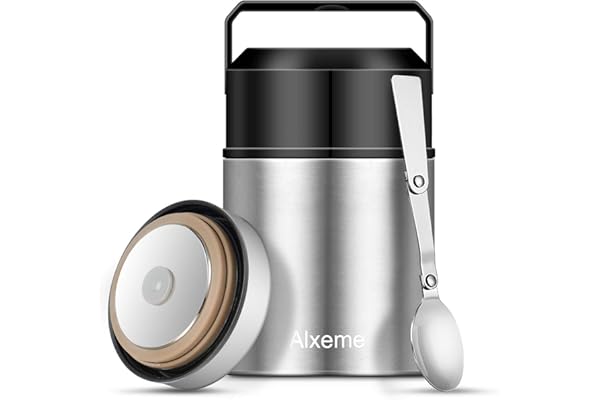 Soup Thermos Food Jar Insulated Lunch Container Bento Box for Cold Hot Food 27oz Food Flask Wide Mouth Stainless Steel Vacuum Lunch Box for Kids Adult with Spoon Flexible Handle Leak Proof