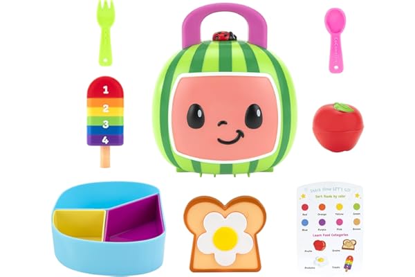 Includes Lunchbox, 3-Piece Tray, Fork, Spoon, Toast with Egg, Apple, Popsicle, Activity Card - Toys for Kids, Toddlers, and Preschoolers