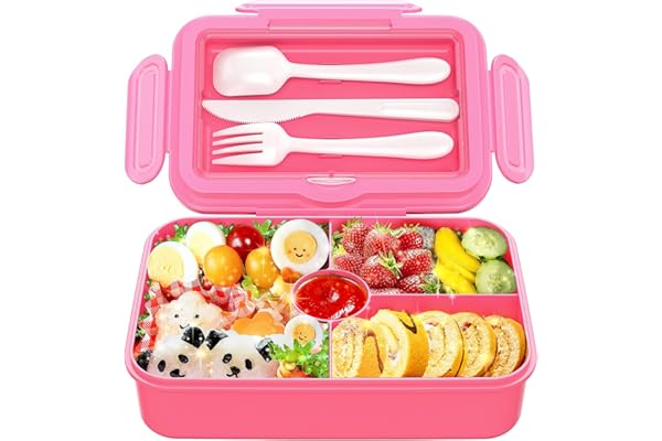 DaCool Toddler Girls Lunch Containers with Fork Spoon for Meal Snack On-the-Go School Picnic, Microwave Dishwasher Safe, Pink