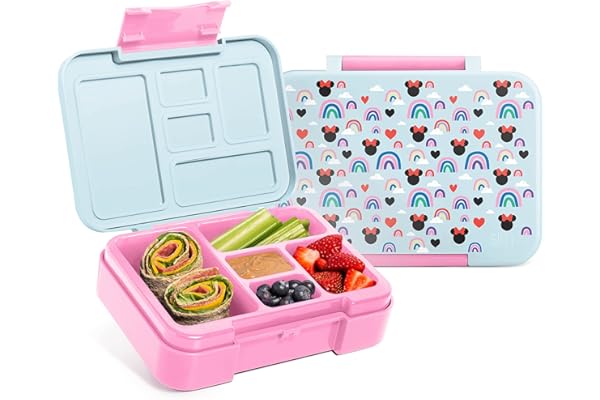 BPA-Free Leakproof Lunch Container for Girls, Boys, Toddlers with 5 Compartments | Porter Collection | 30oz | Minnie Mouse Rainbow