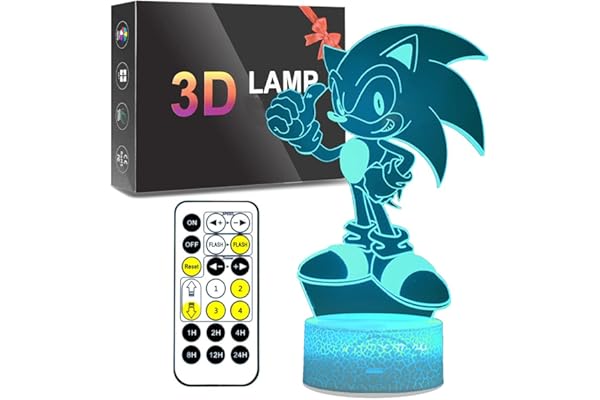 with Remote Control Kids Bedside Lamp, Sonic The Hedgehog Design, Boys Bedroom Decor, is Perfect Great Birthday Xmas Gift for Boys and Girls
