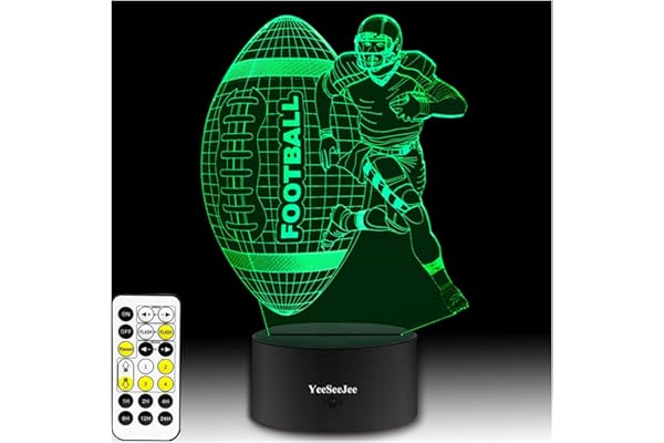 YeeSeeJee Football Gifts for Men 3D Illusion Lamp with 7 Colors Timer Remote Birthday Gifts for Boys Age 6 7 8 9 10 Year Old Boys Gifts (FOTB 7CB)