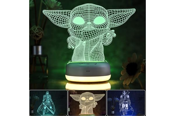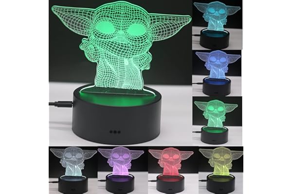 E-lec Baby Yoda Toys 3D Lamp Star Wars Gifts LED Night Light 7 Colors Changing Bedroom Illusion Lights Home Decor Anime Grogu Toy for Kids Girls Boys Birthday Starwars Fans