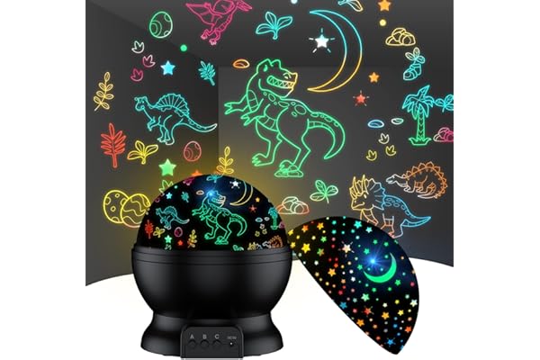 2 in 1 Night Light with Projector&360° Rotation,Boy Toys for Kids Birthday Party Easter Xmas Chirstmas Gifts Toddler Toys for Boys Age 2-14 (Black)