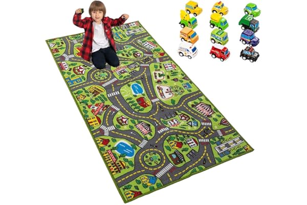 JOYIN Kids Play Rugs with 12 Pull-Back Vehicle Set