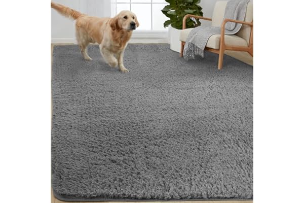 4x6 Feet, Plush Area Rugs for Living Room Bedroom, Fluffy ​Rug for Nursery Playroom Dorm Room, Shag Plush Rug for Teen Room Decor, Grey