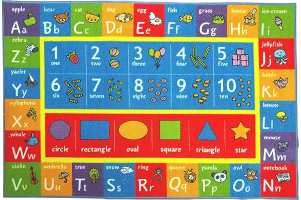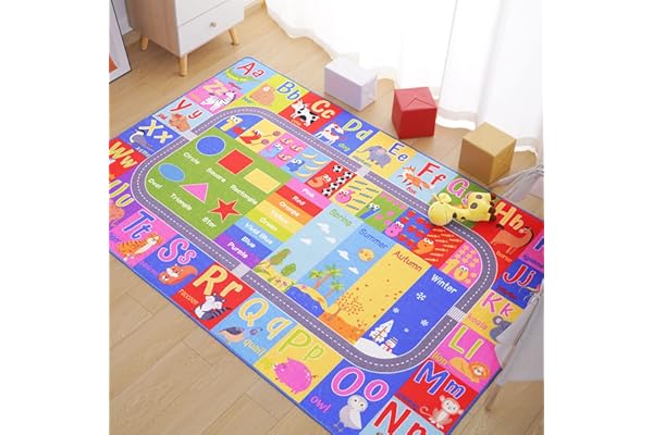 Flagover Kids Play Rug ABC Educational Area Rug, Alphabet Numbers Animal Seasons and Shapes Learning Play Carpet for Playroom Nursery Kids Children Bedroom