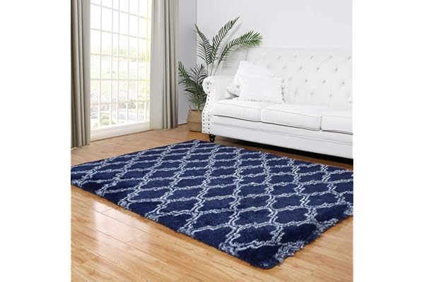 4X6 Feet Navy Blue Soft Area Rug for Bedroom Living Room Furry Big Plush Fuzzy Rugs Luxury Fluffy Rug for Girls Boys Kids Room Shaggy Carpet (4X6 Feet, Navy Blue/White)
