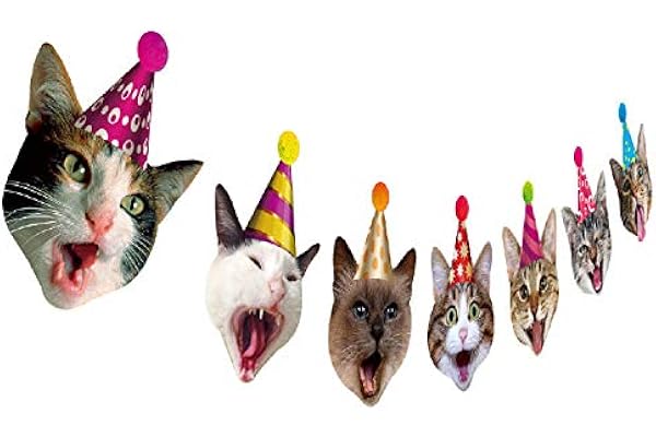 Photographic Cat Faces Birthday Banner, Kitties Bday Party Bunting Decoration
