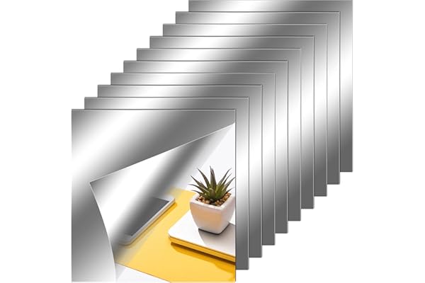 Zonon Flexible Mirror Sheets Self Adhesive Non Glass Mirror Tiles Mirror Stickers for Home Wall Decor (10 Pieces,12 x 12 Inches)