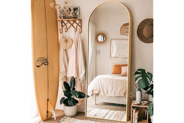 NeuType 65"x22" Arched Full Length Mirror Large Arched Mirror Floor Mirror with Stand Large Bedroom Mirror Standing or Leaning Against Wall Aluminum Alloy Frame Dressing Mirror