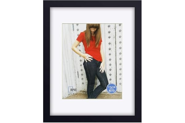 RPJC 11 x 14 Picture Frames Made of Solid Wood and High Definition Glass Display Pictures 8x10 with Mat or 11x14 Without Mat for Wall Mounting Photo Frames Black