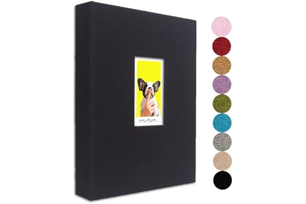 Linen Cover, Front Window, Instax Photo Album Compatible with Fujifilm Instax Mini Film 7s 8+ 9 11, Polaroid PIC 300, HP Sprocket, K-pop Photocards, Black