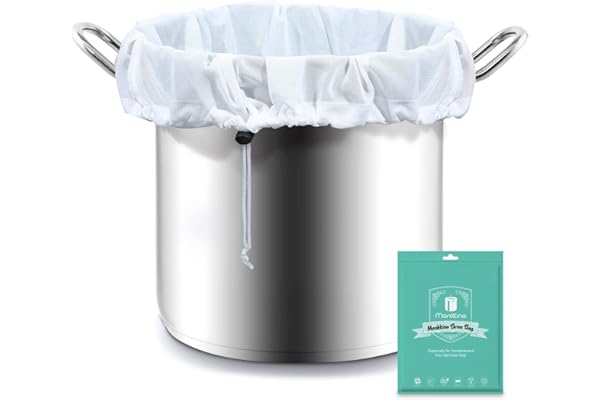 Monkkino Brew In A Bag, Reusable Wine Straining Bag for Homebrewing, 250-Micron Fine Mesh Bag, Durable Filter Bag for Beer, Nut Milk, Cold Brew, Small 16"×18" Polyester Strainer Bag