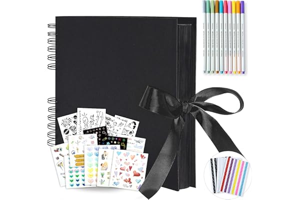 12 x 8 Inch 80 Pages Photo Album Craft Paper, Thick DIY Handmade Album Scrapbook for Anniversary, Wedding,Travelling, Baby Shower (Black-Card)